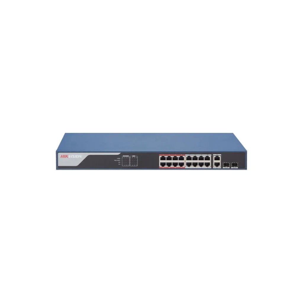 (301802707) Smart Managed 16-Port 100 Mbps PoE Switch, 16 × 100 Mbps PoE RJ45 ports, 2 × gigabit combos, AF/AT camera can reach up to 300 m in extend mode.