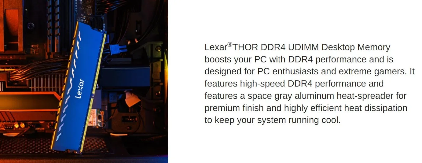 16GB (8GBx2) DDR4 3200Mbps RAM PC (หน่วยความจำ) LEXAR THOR OC DK WITH HEATSINK (LXR-4BU008GR3200GD)