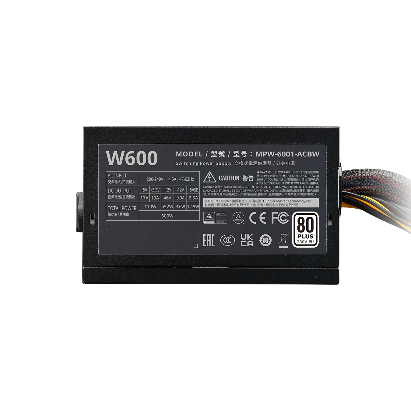 Model MPW-6001-ACBW-BnATX Version ATX 12V Ver. 2.41nPFC Active PFCnInput Voltage 200-240VnInput Current 4.5AnInput Frequency 50-60HznDimensions (L x W x H) 140 x 150 x 86 mmnFan Size 120mmnFan Bearing Sleeve FannEfficiency ≥ 85% @ Typical LoadnErP 2014 Lot 3 YesnOperating Temperature 0-40°CnPower Good Signal 100 – 500 msnHold Up Time ≥10ms at 100% loadnMTBF >100,000 HoursnProtections OVP, OPP, SCP, UVP, OTP, Inrush ProtectionnRegulatory TUV, cTUVus, CE, FCC, CCC, EAC, UKCAnATX 24 Pin Connectors 1nEPS 4+4 Pin Connectors 1nSATA Connectors 5nPeripheral 4 Pin Connectors 3nPCI-e 6+2 Pin Connectors 2nSeries Elite Seriesn80 Plus StandardnModular Non ModularnWattage 500 to 750W