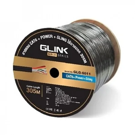 GLINK GLG6011 cat6 Gold series, Outdoor UTP PE w/Drop Wire & Power Wire Cable, Black Color 300M/Roll in Box
