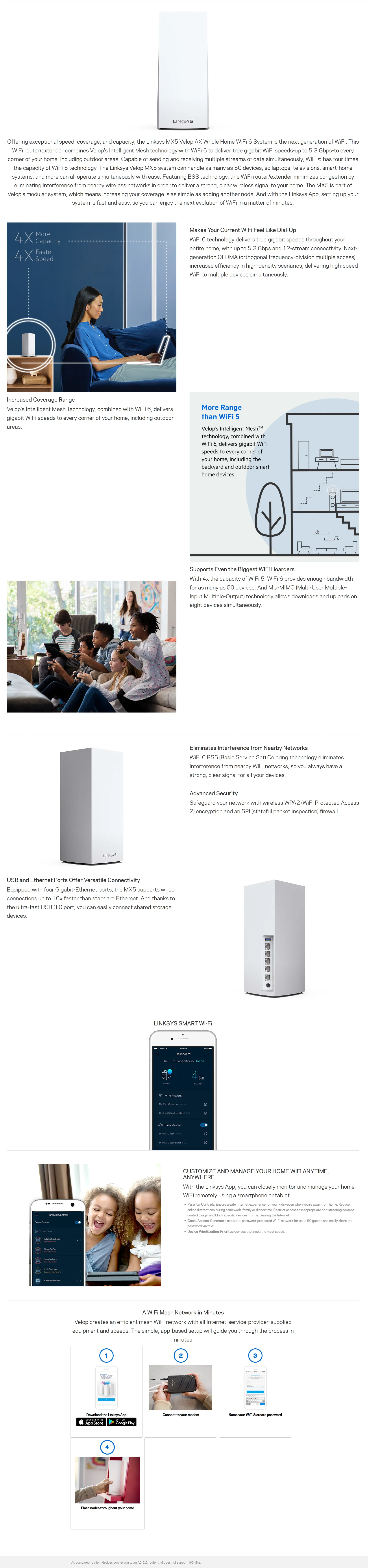MESH WI-FI (เครือข่ายไวไฟ) LINKSYS MX5 VELOP AX WHOLE HOME WI-FI 6 SYSTEM (MX5300-AH) (AX5300)