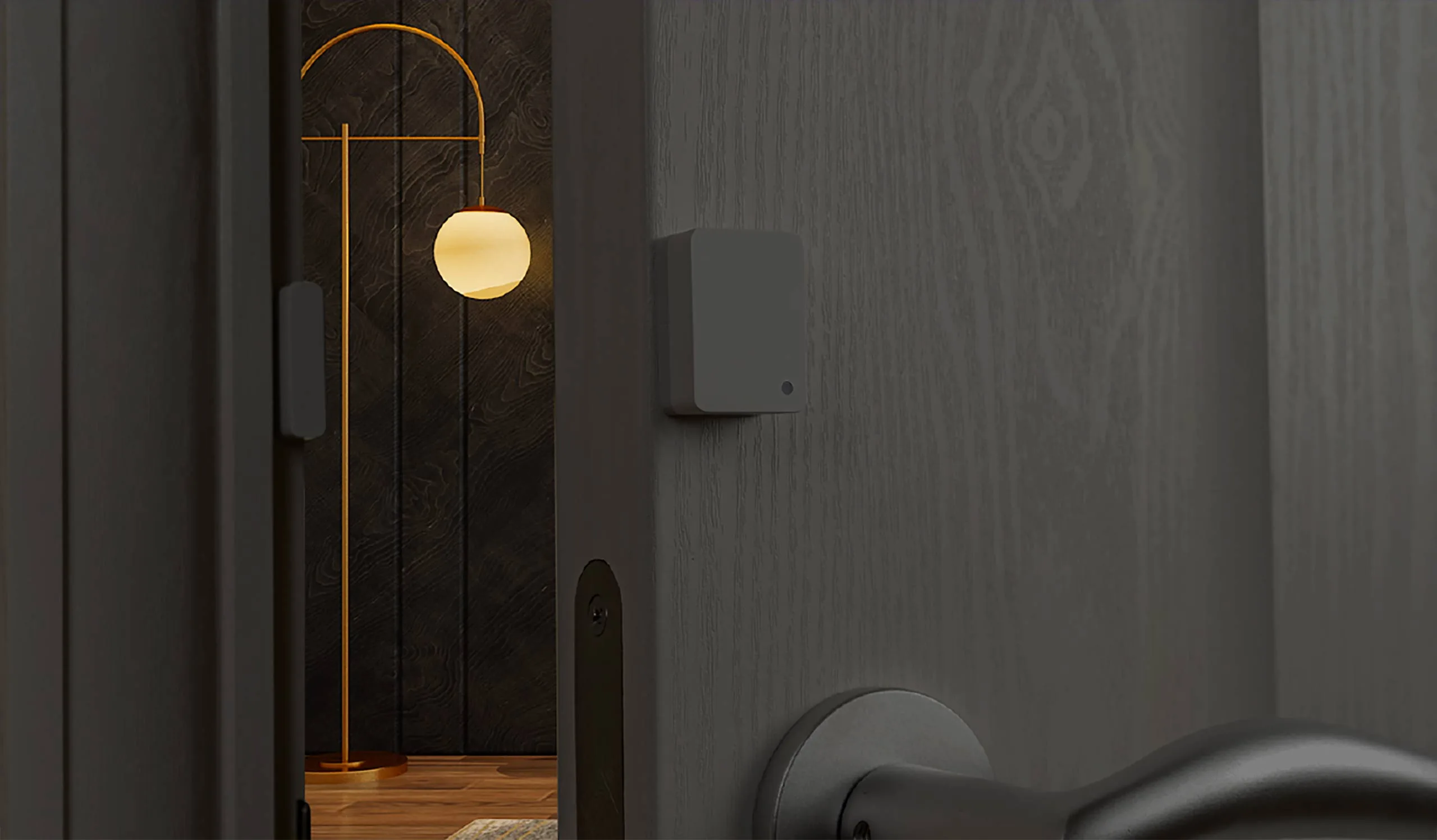 When the light sensor detects that ambient lighting is dim, the sensor connects with a smart light and initiates the night-time entry light scene*.