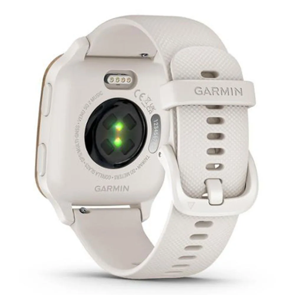 Source : GARMIN VENU SQ2 MUSIC EDITION PEACH GOLD ALUMINUM BEZEL WITH IVORY CASE AND SILICONE BAND