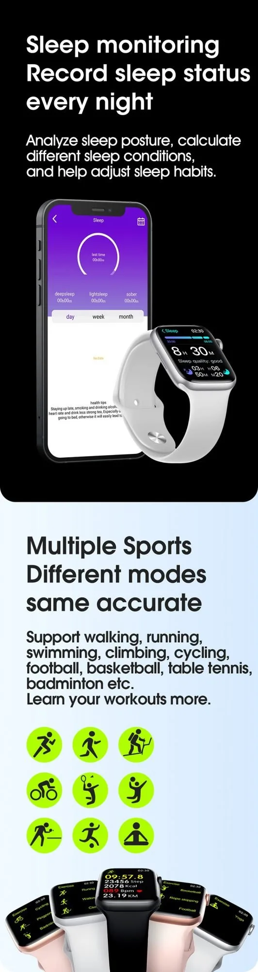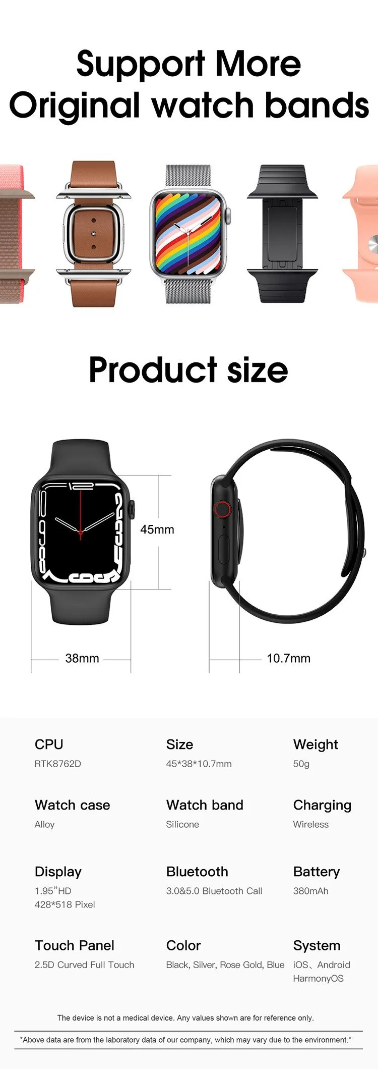 - สายนาฬิกาเป็นซิลิโคน ขนาด 44/45mm สายถอดเปลี่ยนได้