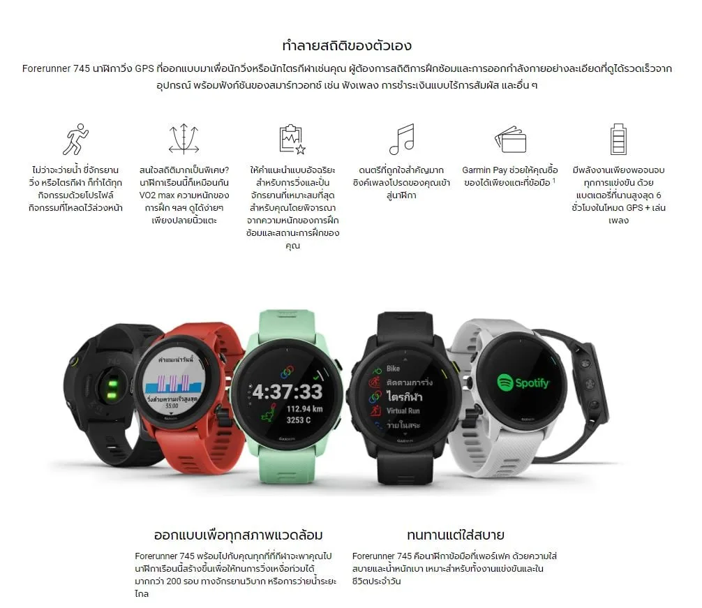 SMARTWATCH (นาฬิกาอัจฉริยะ) GARMIN FORERUNNER 745, GPS, SEA, WHITESTONE
