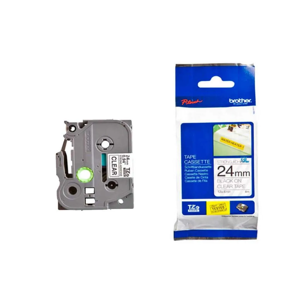 SKU : TZES151 เทปพิมพ์อักษรแบบติดแน่นพิเศษ ขนาด 24 มม. ดำ/ใส แบบเคลือบพลาสติก สำหรับ PT-1650 / PT-2700 / PT-2730 / PT-D600 / PT-E550WVP / PT-P750W / PT-7600 / PT-9200DX / PT-9500PC / PT-9700PC / PT-9800PCN / PT-P900W / PT-P950NW / PT-E850TKWLI