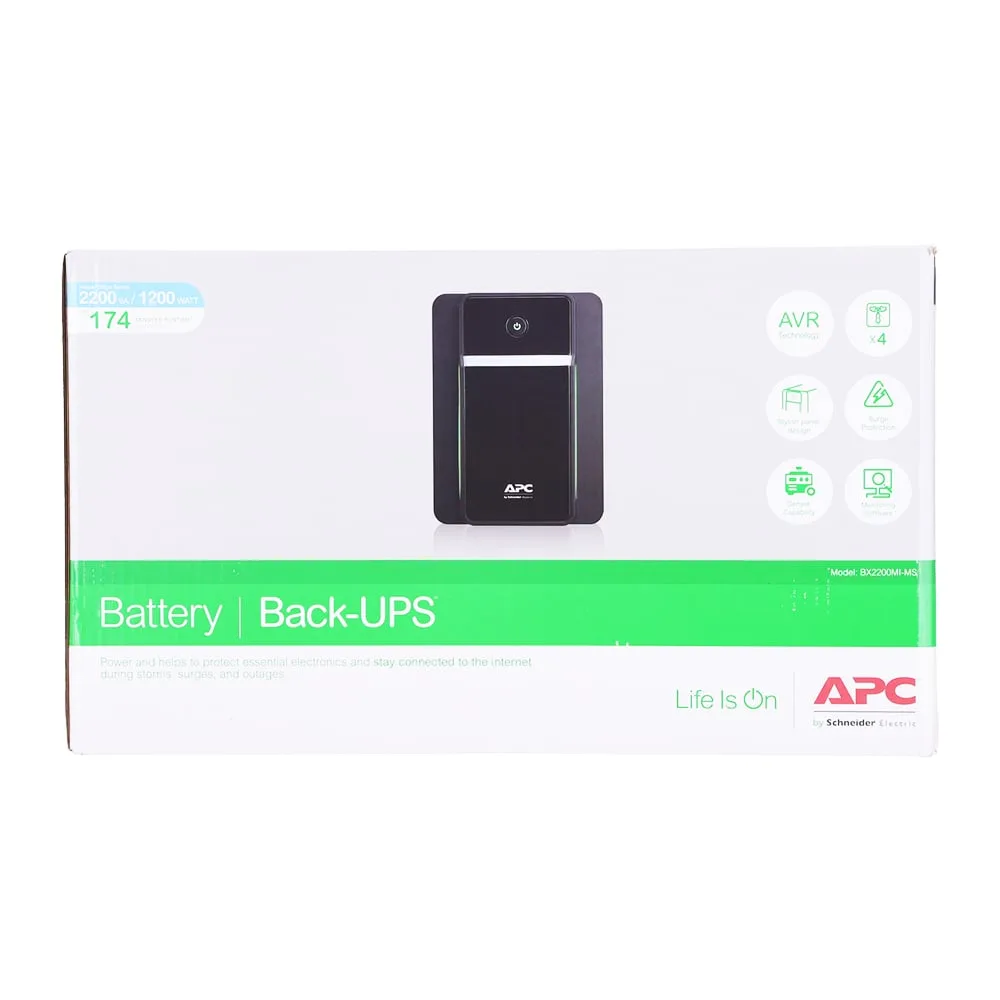 UPS (เครื่องสำรองไฟฟ้า) APC BACK-UPS, 2200VA (2200 VA/1200 WATT) (BX2200MI-MS)